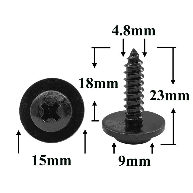 Саморез автомобильный 4,8x18 с полукруглой головкой и шайбой, черный