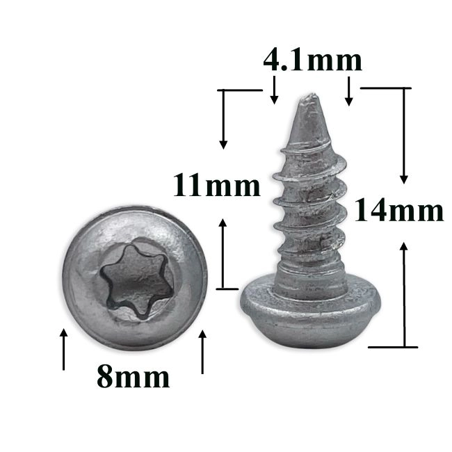Саморез автомобильный 4,1х11 с фланцем, полукруглая головка, серебристый, Torx