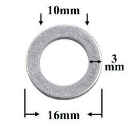 W0028 алюминиевая шайба 10x16x1,5 часто используется как уплотнительное кольцо в топливных системах, в качестве несущей шайбы под болты и шпильки, в узлах, где требуется точное прилегание и минимальный люфт. Подходит для работы в условиях вибрации и перепадов температур.