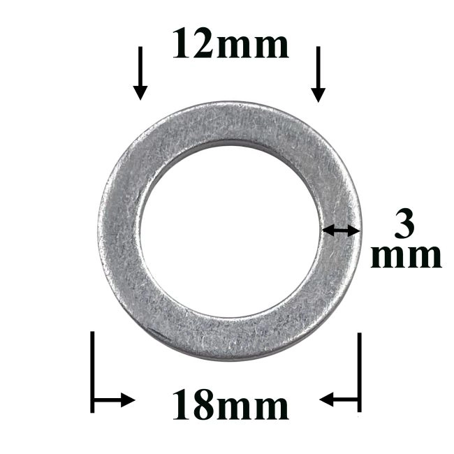 W0034 алюминиевая шайба 12x18x1,5 часто используется как уплотнительное кольцо в топливных системах, в качестве несущей шайбы под болты и шпильки, в узлах, где требуется точное прилегание и минимальный люфт. Подходит для работы в условиях вибрации и перепадов температур.