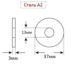 Шайба М12 кузовная DIN9021 A2 толщиной 3мм и внутренним диаметром 13мм предназначена для равномерного распределения нагрузки на контактную поверхность в местах крепления деталей с использованием болтов, гаек или резьбовых стержней.