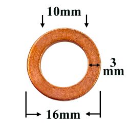 Шайба медная W0029 10x16x1,5мм — это уплотнительный элемент, выполненный из меди, обеспечивающий герметичность соединений в узлах под давлением. Размеры: внутренний диаметр 10мм, внешний — 16мм, толщина — 1,5мм.
