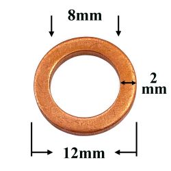 Шайба медная W0013 8x12x1,5мм — это уплотнительный элемент, выполненный из меди, обеспечивающий герметичность соединений в узлах под давлением. Размеры: внутренний диаметр 8мм, внешний — 12мм, толщина — 1,5мм.