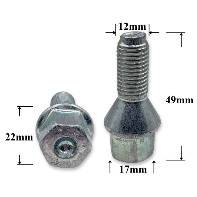 T0004 Болт колёсный иномарки М12*22*1,5 ключ 17 "Lanos" предназначен для надежной фиксации колес на авто, таких как ALFA ROMEO AUDI CHERY CHEVROLET CHRYSLER CITROEN DAEWOO DODGE FIAT FORD GEELY GM HAVAL HONDA HYUNDAI INFINITI ISUZU KIA LANCIA LAND ROVER LEXUS MAZDA MERCEDES MITSUBISHI NISSAN OMODA OPEL PEUGEOT RENAULT SEAT SKODA SUBARU SUZUKI TOYOTA VOLKSWAGEN VOLVO BMW ACURA. Изготовлен из высокопрочной стали, обеспечивающим защиту от коррозии и долговечность даже в условиях сурового российского климата. Подходит для литых и штампованных дисков благодаря конусной прижимной поверхности.