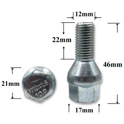 Болт колёсный М12х1,5х46/22 (кл. 17, ЦИНК)