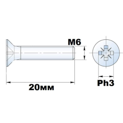 Винт М6х20 DIN965 A2 Ph 3 с потайной головкой из нержавеющей стали обеспечивает создание высокопрочного, практически не заметного соединения