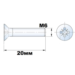 Винт М6х20 ~DIN965 оцинкованный с потайной головкой из нержавеющей стали обеспечивает создание высокопрочного, практически не заметного соединения